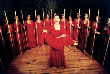A Greek chorus of nineteen women perform a series of fragmented texts by William Shakespeare in English and Spanish.