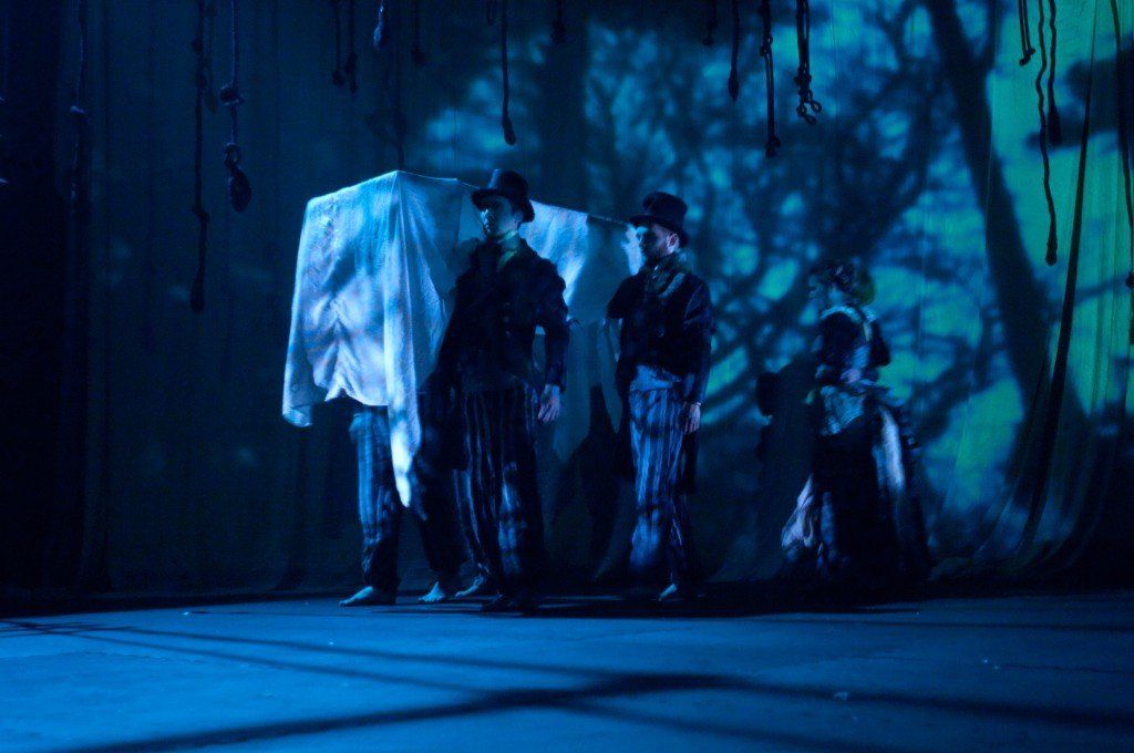 Dracula has been co-devised by an ensemble cast. This collaborative process requires actors on a creative and interpretive level who contribute imaginative ideas to the collective narrative of the performance. The challenge of adapting a literary work to a theatrical context has involved combining Greek Chorus (space, formation and gesture) with Melodrama (where music accompanies the action). The relationship between these two theatrical styles aims to amplify the emotional connection between the audience and the story.